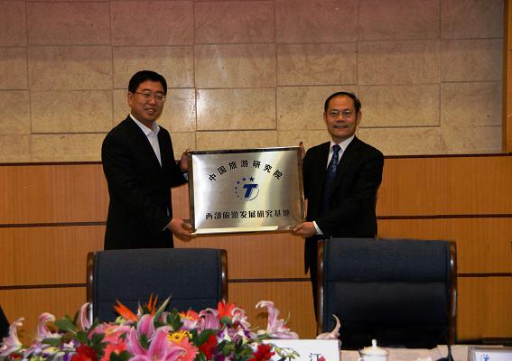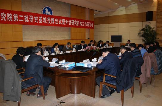 1月17日下午,我院在国家旅游局503会议室召开第二批研究基地授牌仪式暨外设研究机构工作研讨会?;嵋橛晌以捍鞅笤撼ぶ鞒?,国家旅游局副局长杜江出席会议并为研究院第二批研究基地颁牌。