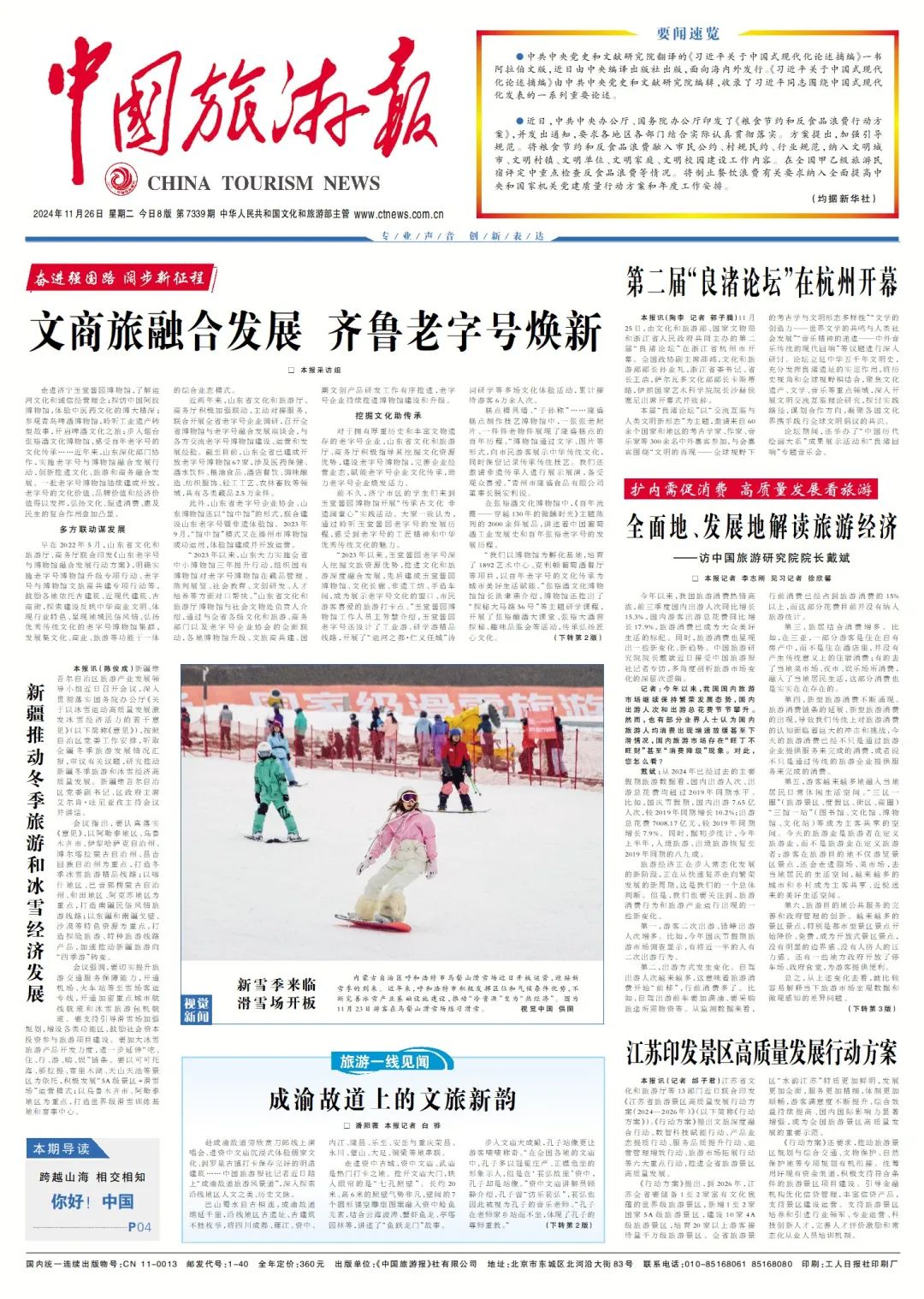 Recently, Dean Dai Bin of our college was invited to accept an exclusive interview with China Tourism News, interpreting the tourism economy in a comprehensive and developmental way. The full text was published on the front page of China Tourism News on November 26, 2024. The full text is shared as follows: