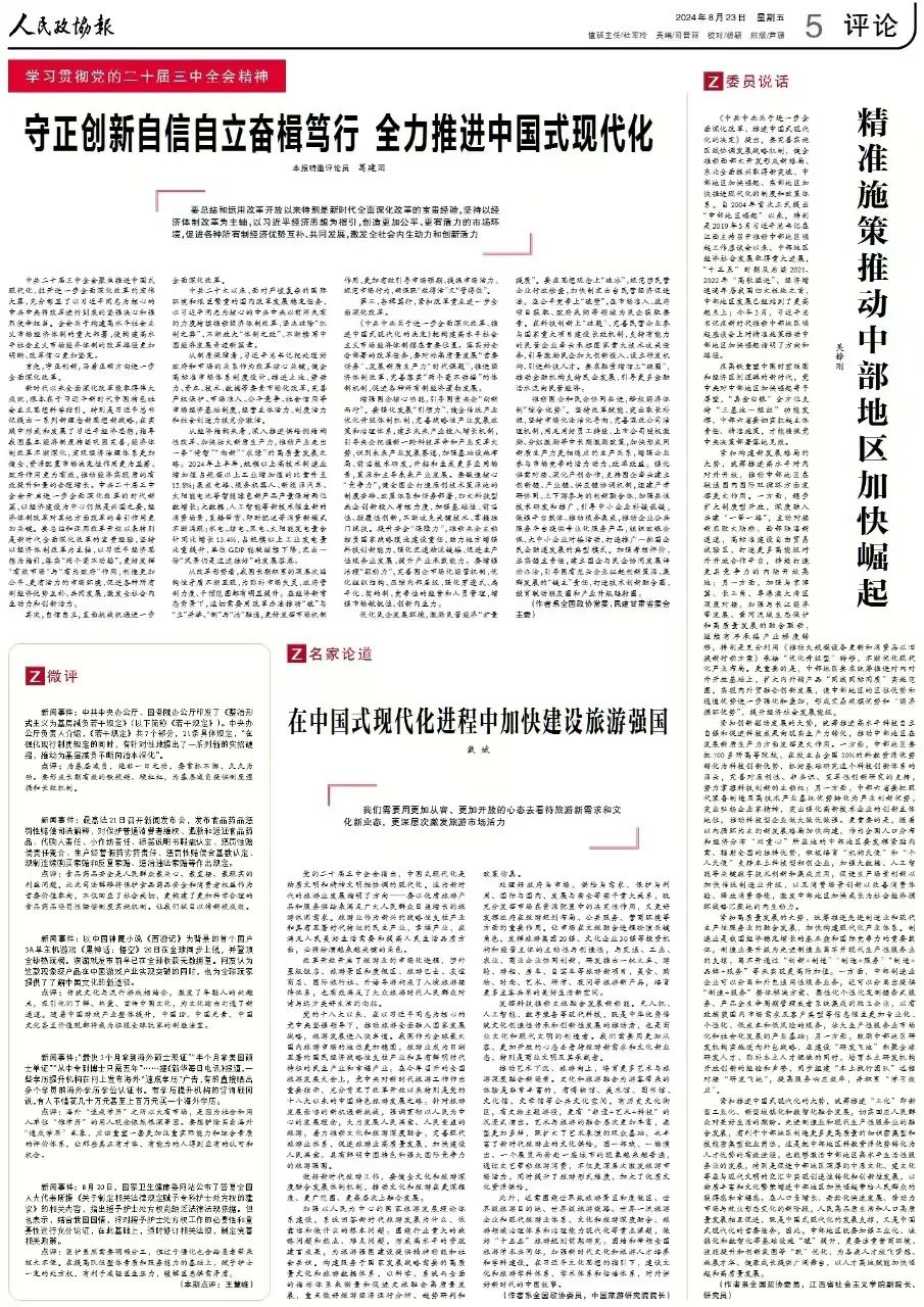 Recently, President Dai Bin of our institute was invited to publish a signed article in the People's Political Consultative Conference Daily titled "Accelerating the Construction of a Tourism Power in the Process of Chinese-style Modernization". The article emphasizes that we should look at new tourism demands and new cultural formats with a more relaxed and open mind, and stimulate the vitality of the tourism market at a deeper level. The article also offers suggestions on improving the system and mechanism for the deep integration and development of culture and tourism in the new era, and promoting the integration and development of culture and tourism at a deeper level, wider scope, and higher level. The full text is shared below.