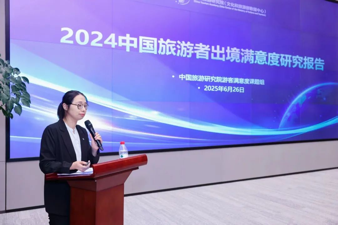 成果发布环节,我院数据分析所张佳仪代表课题组发布《2024中国旅游者出境满意度研究报告》。报告指出,2024年中国出境游客满意度指数80.06,处于“满意”区间。在出境旅游市场稳步复苏、游客出游预期和需求标准加速迭代的背景下,出境游客满意度维持满意水平,与持续涌动的目的地创新密不可分。未来,中国出境游客满意度的提升仍需直面安全提升、核心旅游服务提质、公共服务强化等诸多挑战。