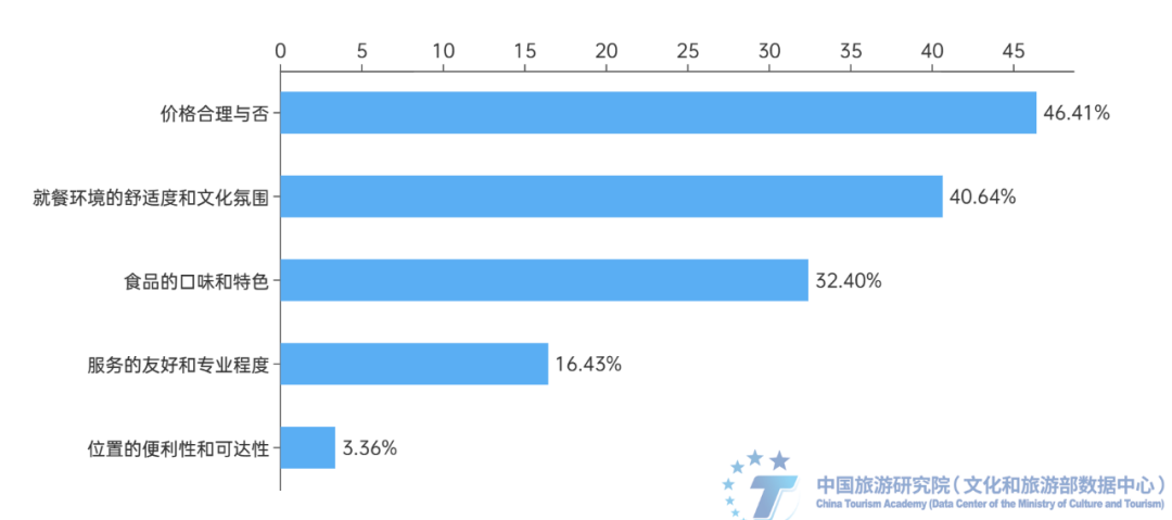 图11 选择古镇餐饮场所时,受访者最看重的因素及占比