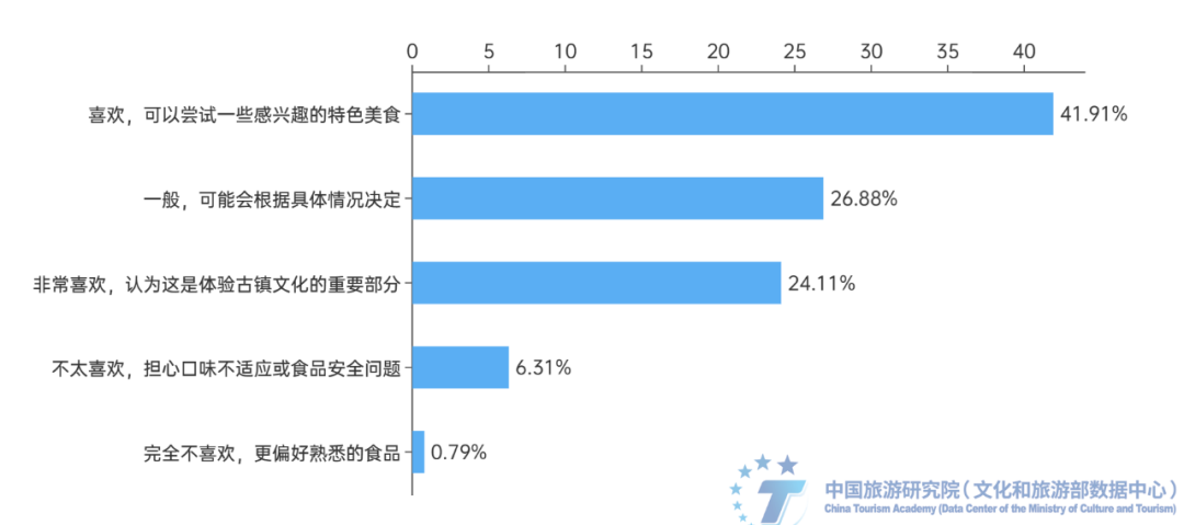 图10 是否喜欢尝试古镇当地特色美食或风味小吃的受访者占比