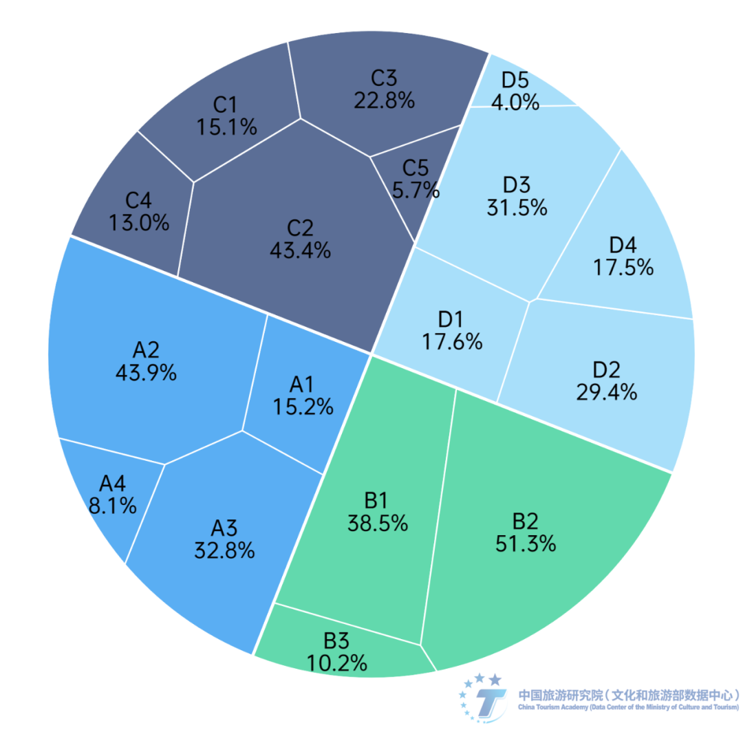 注:A代表古镇旅游中受访者最担心的问题;B代表受访者对古镇之间是否存在较大相似性的认知;C代表受访者认为古镇同质化的主要表现;D代表受访者认为古镇同质化的原因。A1代表人流拥挤;A2代表过度商业化、失去原真性;A3代表服务质量差;A4代表古镇?;げ簧?、环境脏乱。B1代表感觉很多古镇都很相似;B2代表有一些相似;B3代表不相似。C1代表建筑风格相似,缺乏特色;C2代表商店和售卖的商品缺乏特色,多为纪念品和仿古工艺品;C3代表古镇餐饮类似,缺乏地道的地方特色美食;C4代表文化活动和体验项目内容相似;C5代表旅游服务和管理模式相同。D1代表追求快速商业化和旅游开发;D2代表原住民流失;D3代表模仿成功案例,缺乏创新;D4代表缺乏深入的文化挖掘和传承;D5代表政府规划和政策引导不足。