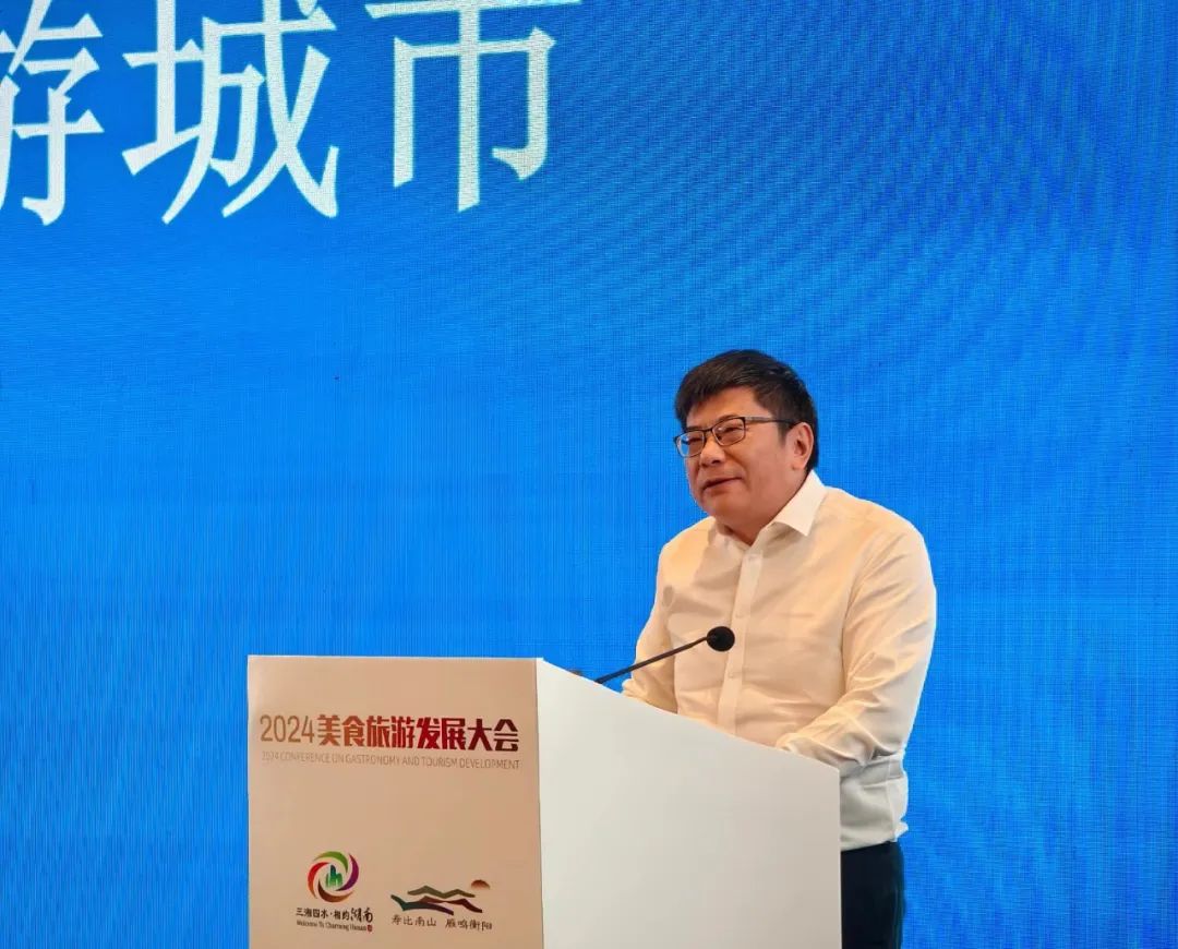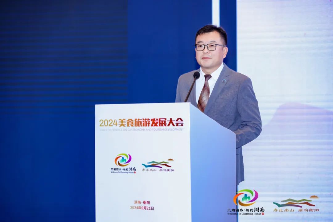 9月21日,由中国旅游研究院、湖南省文化和旅游厅、中共衡阳市委、衡阳市人民政府联合主办,湖南省旅游协会、衡阳市文化旅游广电体育局、衡阳市商务局承办,世界中餐业联合会支持举办的“2024美食旅游发展大会”在湖南衡阳举行。大会围绕“融合、创新与高质量发展”主题,通过主题演讲、成果发布、案例发布与经验分享、嘉宾对话等环节,旨在贯彻落实习近平总书记关于文化和旅游工作重要讲话和指示批示精神,贯彻落实全国旅游发展大会精神,探索“美食+旅游”深度融合创新发展路径,推动中国美食旅游高质量发展?;疃珊鲜∥幕吐糜翁匙槌稍?、副厅长尚斌主持。