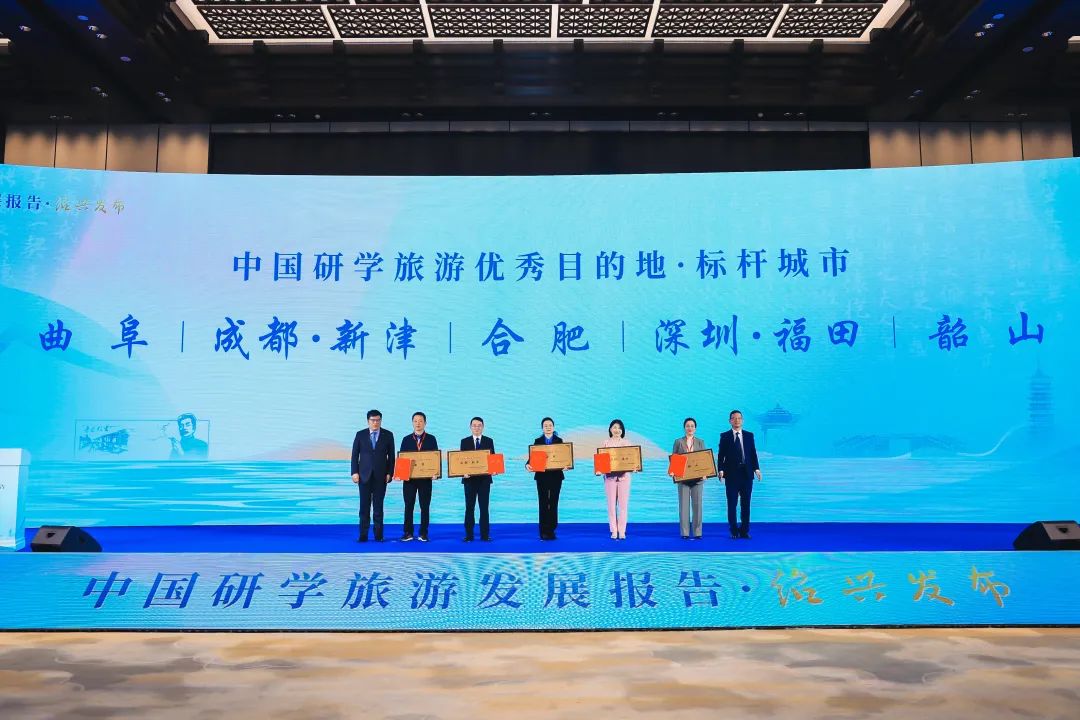 在“中国研学旅游目的地·标杆城市”发布环节,戴斌院长和绍兴市副市长陈伟军共同为合肥市、深圳市福田区、成都市新津区、曲阜市、韶山市五个标杆城市(区)颁发证书。合肥市文化和旅游局党组书记、局长吴娅娟、中共深圳市福田区委宣传部副部长、福田区精神文明建设办公室主任黄臻、成都市新津区文化广电体育和旅游局副局长符文、曲阜市文化和旅游局副局长孔国栋、韶山市文化旅游广电体育和商务局副局长王进作为城市(区)代表上台,现场分享了各自城市发展研学旅游的经验做法与亮点。