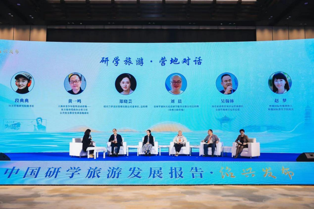 最后,由ICE营地研究院秘书长段典典主持圆桌对话二“研学旅游·营地对话”,围绕我国研学营地建设与发展,与上海市青少年校外活动营地—东方绿舟党政办公室主任、公共安全教育实训基地部长黄一鸣、绍兴兰亭景区管理有限公司董事长、总经理郑晓芸、贵州平塘问天星晨研学服务有限公司总经理刘晨、海亮素质教育项目运营部部长、全国营地项目运营总监吴翰林、野趣国际营地创始人、野趣国际教育学院院长赵梦展开了广泛讨论。作为中国研学旅游领域高站位、全局性、连续性的发布活动,“中国研学旅游发展报告·绍兴发布”会议正逐步积累起智库品牌效应。此次会议也受到央广网、人民日报、新华网等20多家主流媒体关注与报道,吸引了来自政企产学研等各界人士的普遍关注,多主体的共同参与将进一步推动我国研学旅游市场坚实而高质量地发展。