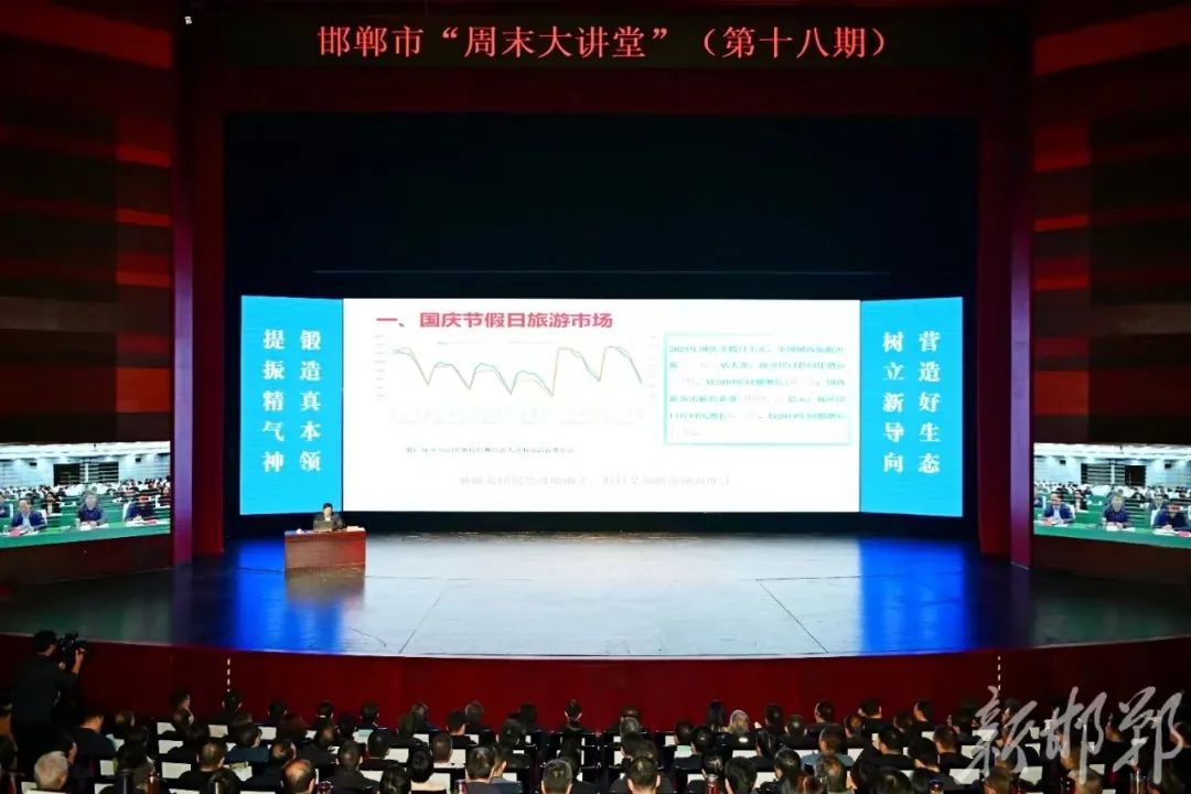 应邯郸市委市政府邀请,中国旅游研究院院长戴斌11月9日为邯郸周末大讲堂授课。戴斌以《贯彻全国旅游发展大会精神 推进旅游业高质量发展》为题,围绕国庆节假日旅游市场、前三季度旅游经济、政策展望与工作重点等方面进行了讲解。结合邯郸旅游资源和产业现状,就建设旅游强市提出了意见建议。