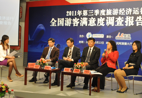2011年10月13日,由中国旅游研究院主办、人民网旅游频道承办的2011年第三季度旅游经济运行暨全国游客满意度调查报告发布会在京举行。中国旅游研究院院长戴斌教授、张栋副院长、北京联合大学旅游学院副院长张凌云教授、北京第二外国语学院旅游管理学院副院长谷慧敏教授出席会议,来自新华社、经济日报、旅游卫视、中国旅游报、中国旅游网等多家媒体机构的代表及我院相关课题组成员参加了发布会。