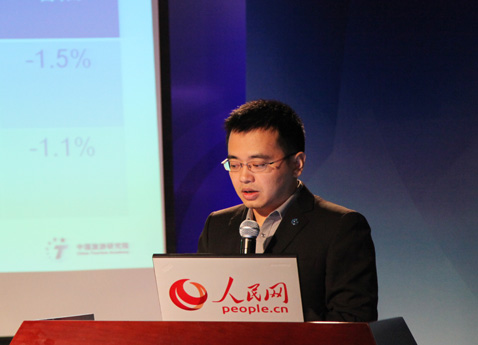 随后,我院国家旅游经济实验室陈旭博士发布2014年前三季度旅游经济运行分析和全年趋势预测报告,报告认为前三季度,旅游市场保持了持续快速的增长态势,产业投资和业态创新更加活跃。预计前三季度,全国旅游接待总人数为28亿人次,实现旅游收入2.4万亿元人民币。全年目标可以全面完成。预计全年接待旅游总人数37.2亿人次,同比增长10%。全年旅游接待总收入3.3万亿元,同比增长14.6%。
