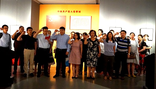 25日上午,研究院党支部一行全体职工在国家图书馆常务副馆长陈力及相关工作人员的带领下,先后参观了甲骨文文献展馆、中华传统文化展馆、红色记忆展馆国家图书馆新馆以及数字图书馆等,大家认真聆听工作人员的精彩讲解,仔细浏览各个展馆的珍贵文物,尤其是红色记忆展馆,通过大量珍贵文献史料再现了中国共产党光辉的建设发展历程以及中华民族实现伟大复兴中国梦的奋斗历程,全院党员一起在中国共产党党旗和《中国共产党章程》宣传栏前,慎重举起右手,重温《入党誓词》。