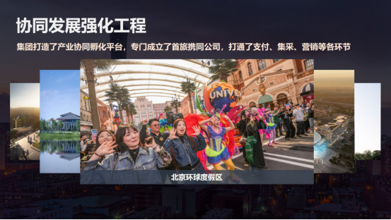 三是协同发展强化工程。首旅集团拥有丰富的业态、庞大的管理架构和众多的变革企业,对于我们来说,协同发展是永恒的命题。在集团内部协同方面,集团打造了产业协同和孵化平台,还专门成立了首旅协同公司,通过支付、集采、营销等各个环节进一步整合了内部资源。同时,集团以服务北京城市副中心的功能建设为起点,累计投资建设了环球影城度假区、首旅集团总部大厦,以及“颐和Live”等重点项目,并加强在京津冀文旅领域的战略合作,与天津文旅集团和河北文旅集团签署了战略合作协议。同时,我们也深度参与了雄安新区的文旅建设。