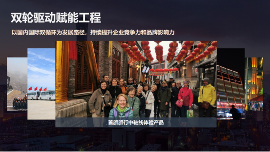 四是双轮驱动赋能工程。集团以国内国际双循环的发展路径,持续提升了企业竞争力和品牌影响力。在国际市场方面,集团在服务保障国际活动的同时,通过首旅集团高端服务体系向世界展示了中国服务。在高水平对外开放的宏观政策指引下,我们还针对入境团队设计了跨区域的文旅项目,串联了中华传统文化体验与现代消费场景,将政策优势转化为企业的发展优势。在国内市场方面,集团持续创新消费场景。在北京中轴线申遗成功后,首旅旅行推出了深度体验产品。最近,我们正在谋划和策展中轴线博物馆,不断做强首店经济,引领环球影城等国际IP。王府井喜悦开设了71家首店店铺,大力发展夜间经济?;非蛴俺浅鞘写蟮来蛟煲徽臼讲鸵槔种行?,入选了文旅部国家级夜间文化和旅游消费集聚区。