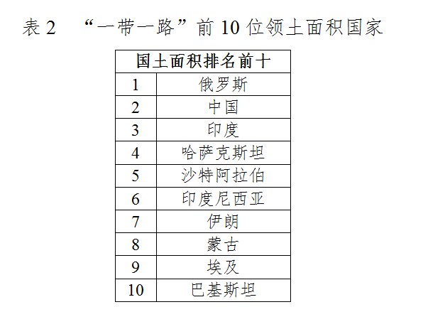 2.“一带一路”国家国土面积:人地关系较为紧张