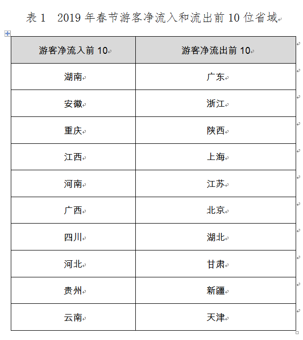 中国旅游研究院与中国电信联合实验室根据信令大数据测算,与国庆长假全国各地旅游较为均衡不同,春节期间南方旅游市场热度更高。游客接待排名前10位的省域为:1、广东 2、四川 3、湖南 4、河南 5、广西 6、山东 7、江苏 8、重庆 9、河北 10、安徽。