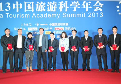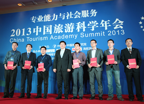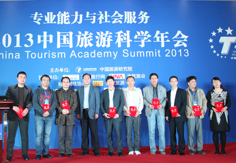 最后,中国旅游研究院戴斌院长为2013年中国旅游科学年会论文获奖嘉宾颁发了优秀论文奖,并做了总结发言,他强调,作为旅游学者,首先要具备很好的语言表达能力、创造能力、学习能力,特别是要有学习智慧的能力,才能不断完善自己。他指出,服务社会即是服务29.6亿人次的千千万万普普通通的旅游者,服务为13亿人的旅游权利去服务的人。年会之所以提出社会服务这个问题,是因为没有社会服务就没有中国旅游学术研究的未来,也承载不了成千上万的旅游学者。只有把根插在民众的土壤里,社会服务的土壤里,旅游研究才会有坚实的未来。