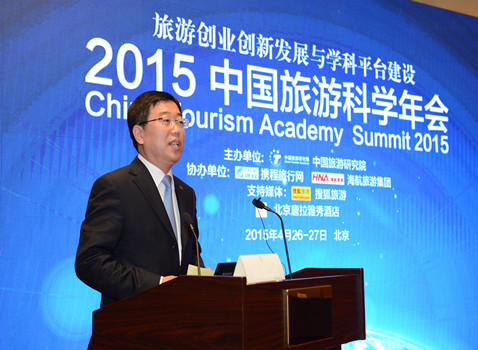 在社会各界的大力支持下,2015中国旅游科学年会于4月26日-27日在北京唐拉雅秀酒店隆重举行。国家旅游局副局长杜江出席年会并讲话。本届年会以“旅游创业创新发展与学科平台建设”为主题,由中国旅游研究院主办,携程旅行网、海航旅业协办,搜狐旅游频道做媒体支持。国家旅游局相关司室及直属单位负责同志、年会协办单位代表、媒体机构代表以及来自全国各地旅游学界、业界专家学者200余人出席了会议。