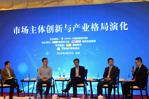 中国港中旅集团公司旅游产业研究院院长陈文杰主持了“市场主体创新与产业格局演化”分论坛。携程攻略社区事业部首席运营官李文、易建科技股份有限公司副总裁丁郁分别以“共建旅游信息服务台”、“以信息化促进旅游业创新与升级”为题做主题发言。中国开元旅业集团总裁陈灿荣、李文首席运营官、丁郁副总裁、中国旅游研究院国际所副研究员杨劲松围绕主题展开深入研讨。